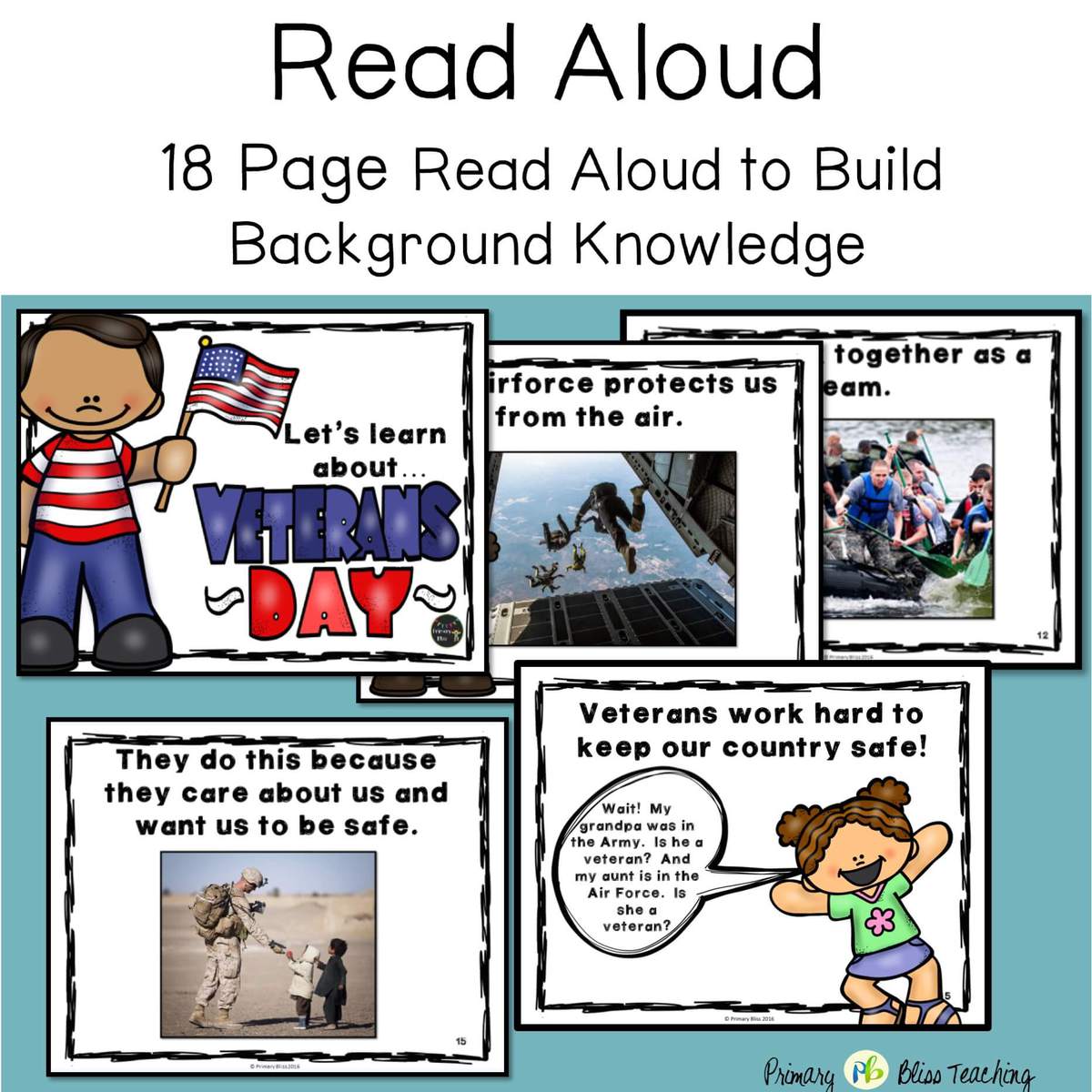 We have created a Veterans Day mini unit for students in first and second grade that is developmentally appropriate. Each Veterans Day lesson starts at ground level, and builds background understanding so that young learners can begin to conceptualize why we celebrate this holiday with a day off of school.